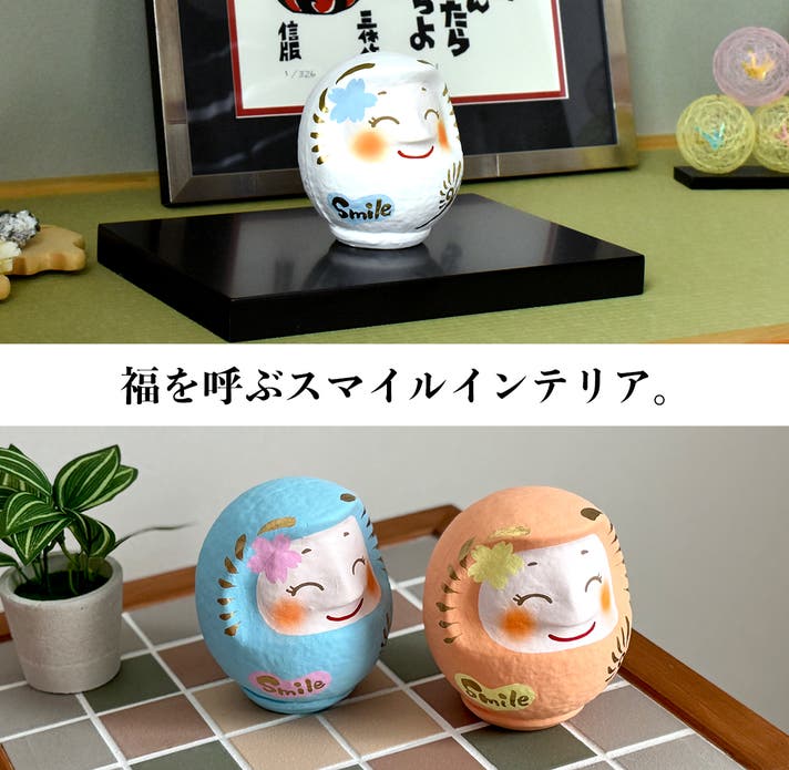 現代の「ほほえみダルマ」は、単なる願掛けやお焚き上げのための縁起物ではなく、日常の暮らしに長く寄り添うインテリアとして末長く楽しめるように丁寧に仕立てています。