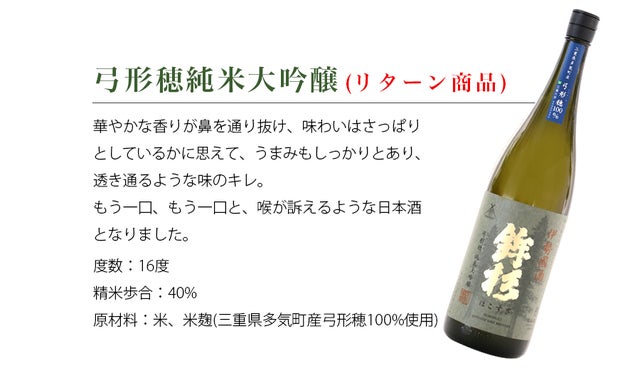 原材料:米、米麹(三重県多気町産弓形穂100%使用)