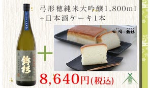 弓形穂純米大吟醸+純米吟醸 1,800ml×1本・日本酒ケーキ1本