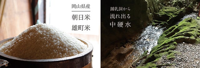 北房のホタルを育む「日本の音風景100選」にも選定された鍾乳洞から流れ出る中硬水と、岡山県産の新米「朝日米」と「雄町米」を使用して作られる2種類の日本酒