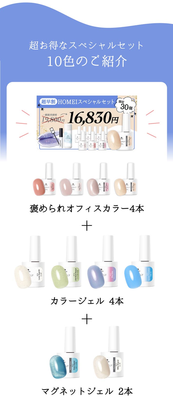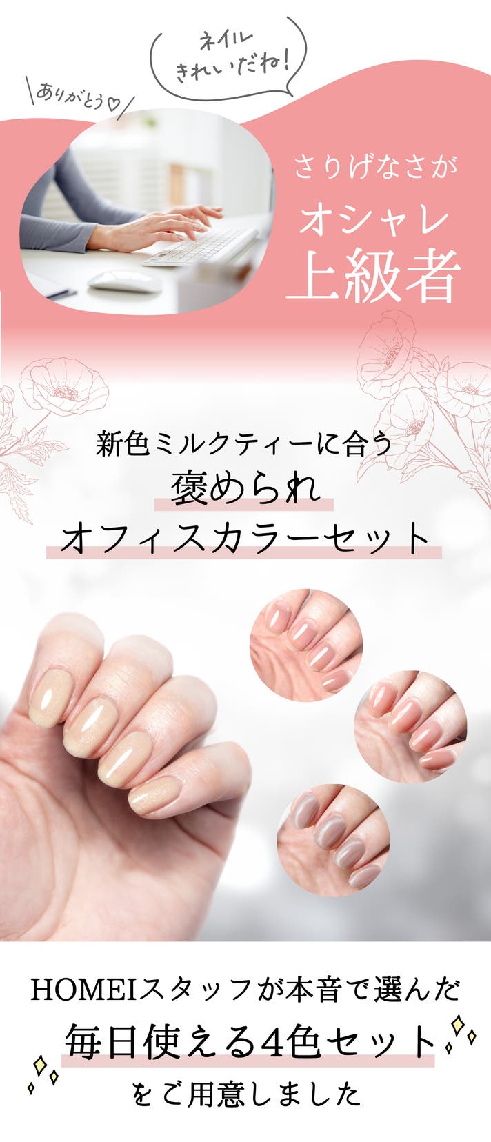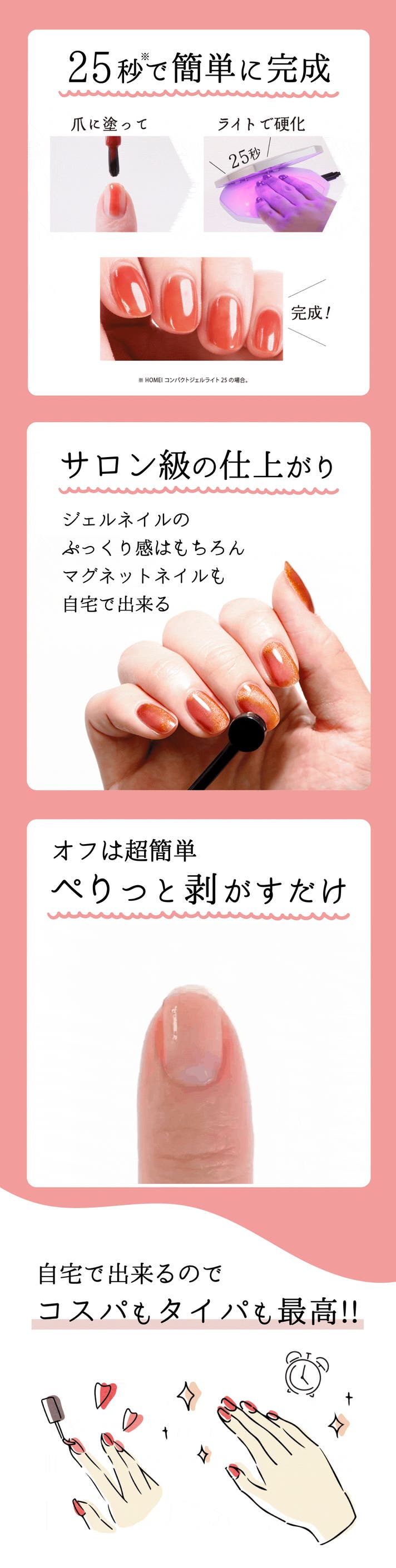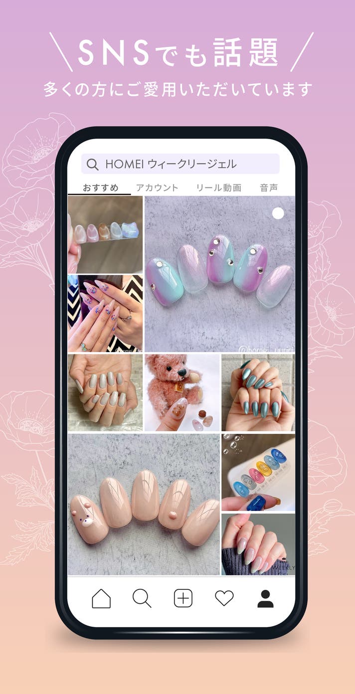 ポリッシュの商品を発売していましたが、それだけはセルフネイルの悩みを解決できない。そんな悩みを解決するために開発されたのが、HOMEIウィークリージェルです。