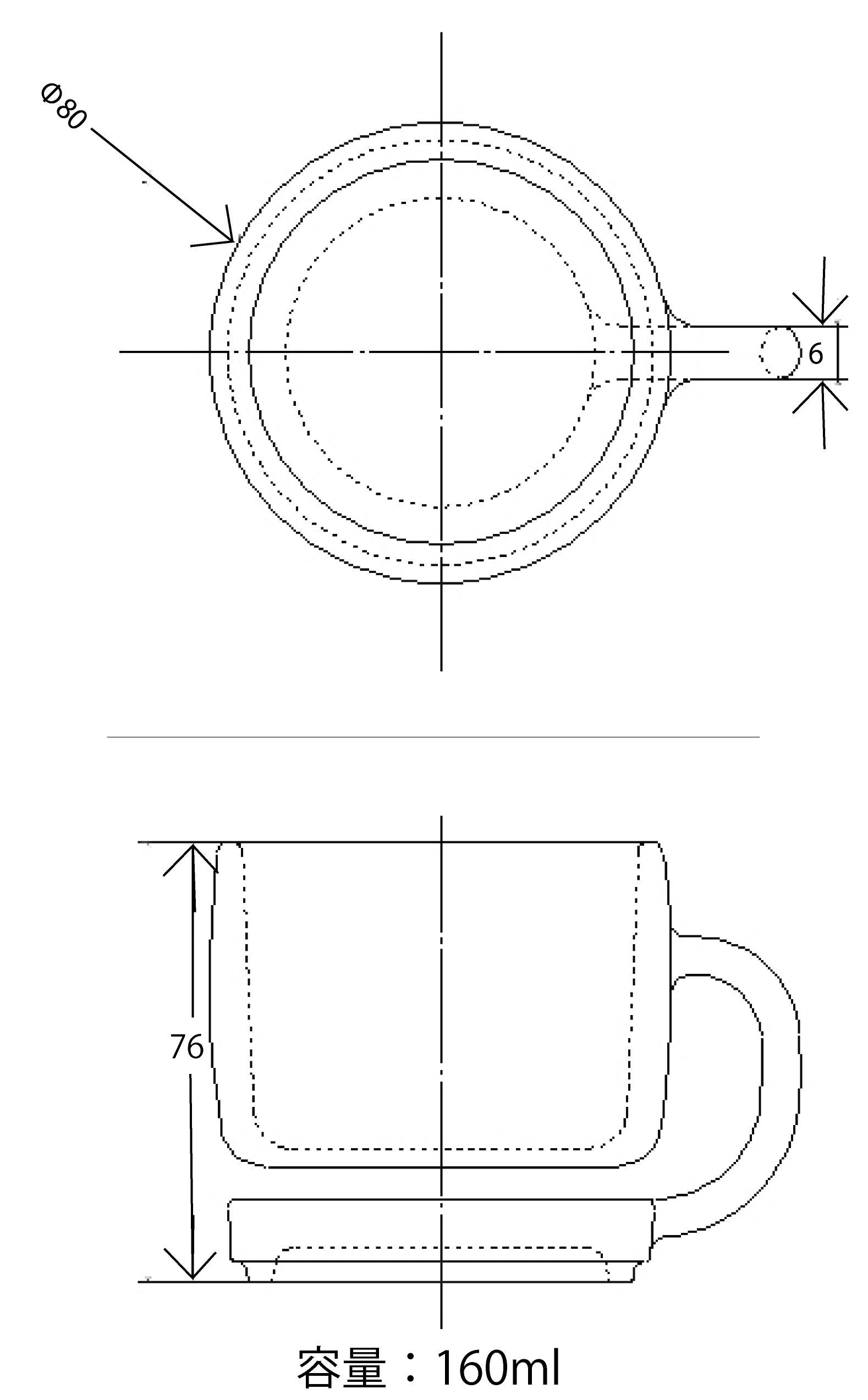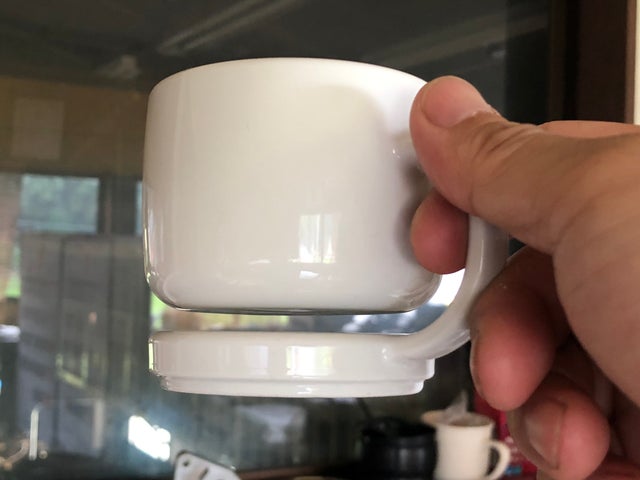 その形状は底からカップが浮いたような形で、テーブルにカップの跡を付きにくくするだけでなく、温かい飲み物は冷めにくいという特徴のカップです。