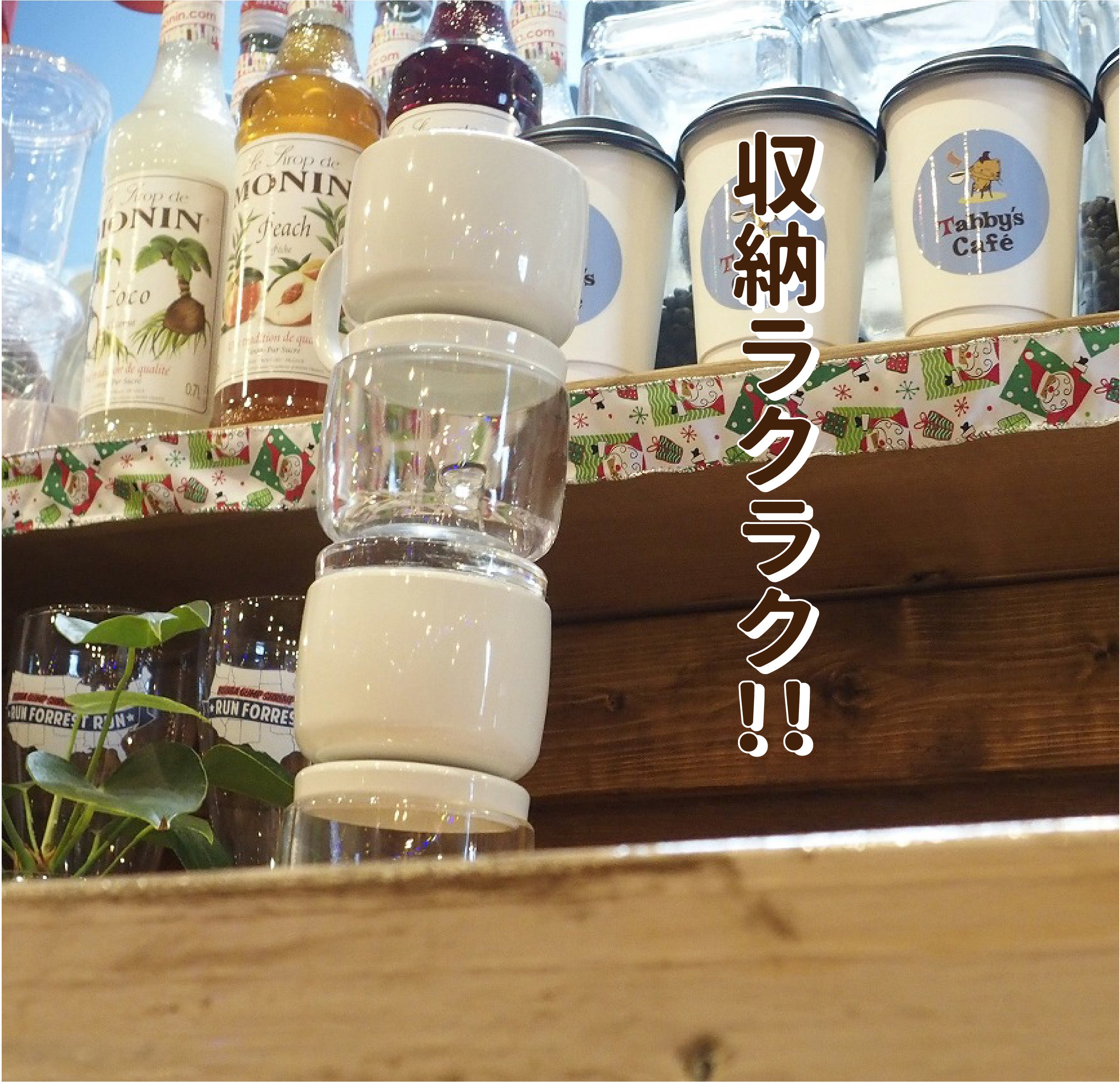 コースター部分のデザインにより、積み重ねて保管しておけます。普通コーヒーカップなどはお皿と一緒に1組ずつ並べておくので場所が必要ですが、U-cupはスタッキングできるのでちょっとした場所にたくさん収納できとても便利です。