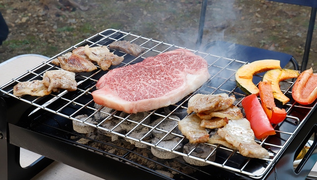 - 安定した火力で焦げ知らず。準備要らずの手軽さで、卓上でもゆったり美味しいBBQを楽しめる。