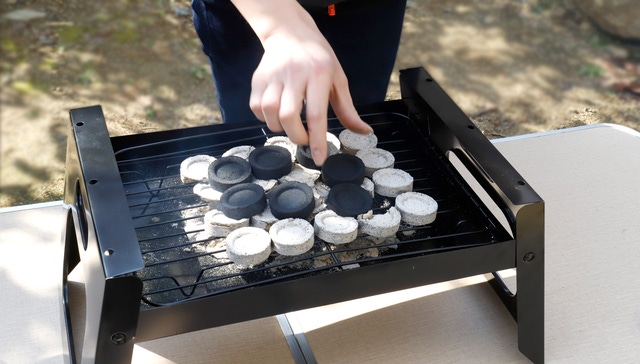 重く、スペースをとる炭が手のひらサイズになるだけで準備・持ち運びの煩わしさを軽減できます!