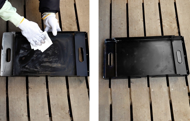 片付けも画期的!炊事場の冷たい水で洗わなくても、キッチンペーパー・ウエットティッシュでサッと拭くだけで完了!