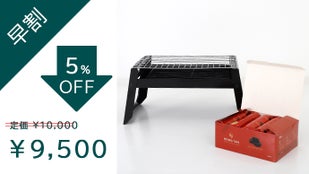 - 日本初上陸!持ち運び便利。重さ1/5・5秒で着火・90分キープの炭で煩わしさゼロのBBQセット