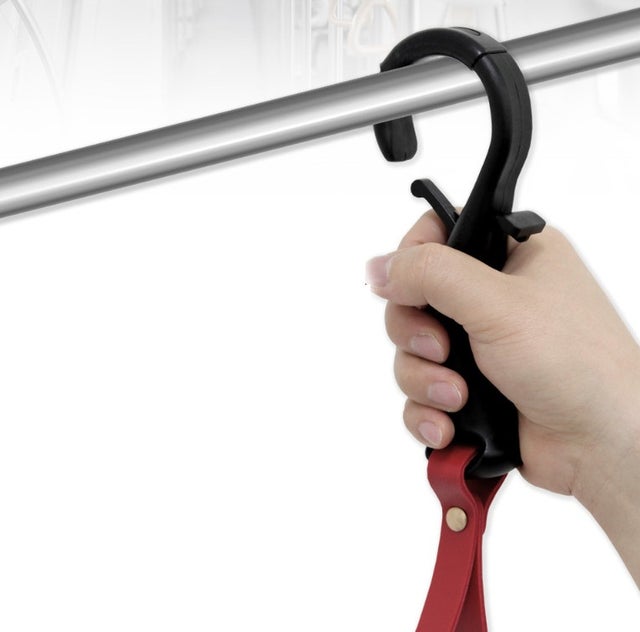 地下鉄、バスなどを利用する際に、フックをつり革用ポールに掛けて使うことができます。また、フックは余裕あるサイズですので、ほとんどの車両で掛けることができます。