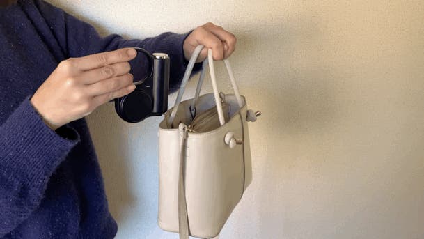 引っ掛けるところがあればどんな鞄にでも対応します。