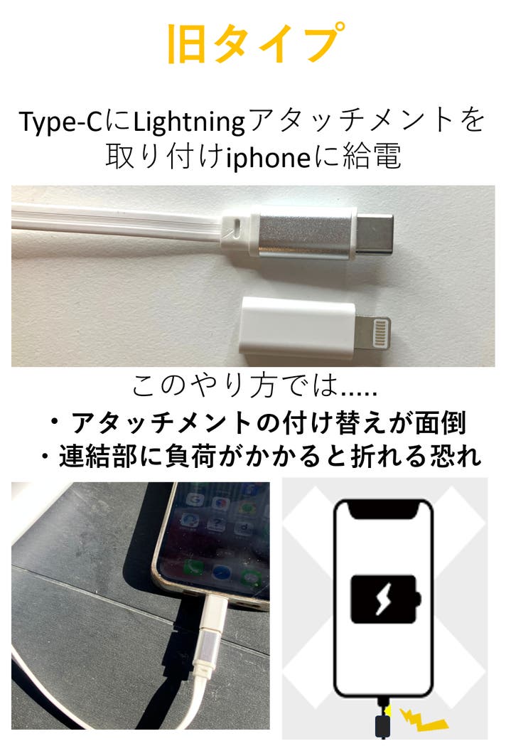 またアタッチメントを付け替えることなくtype-Cとlightningに対応出来るようにも改良しました。