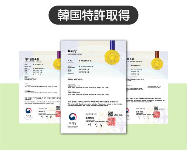 HOOROOCATはペットケア用品として韓国特許を取得した製品です。
