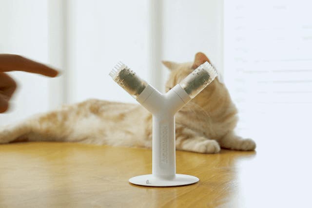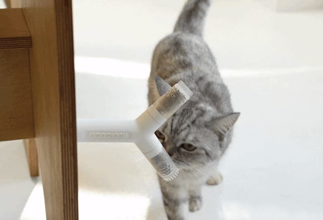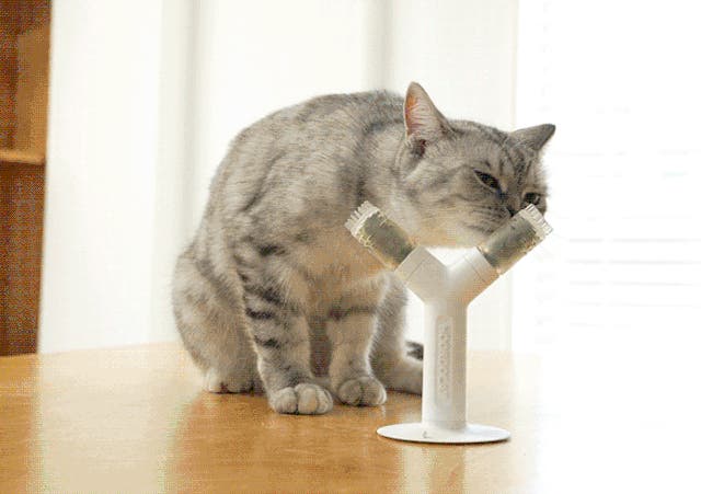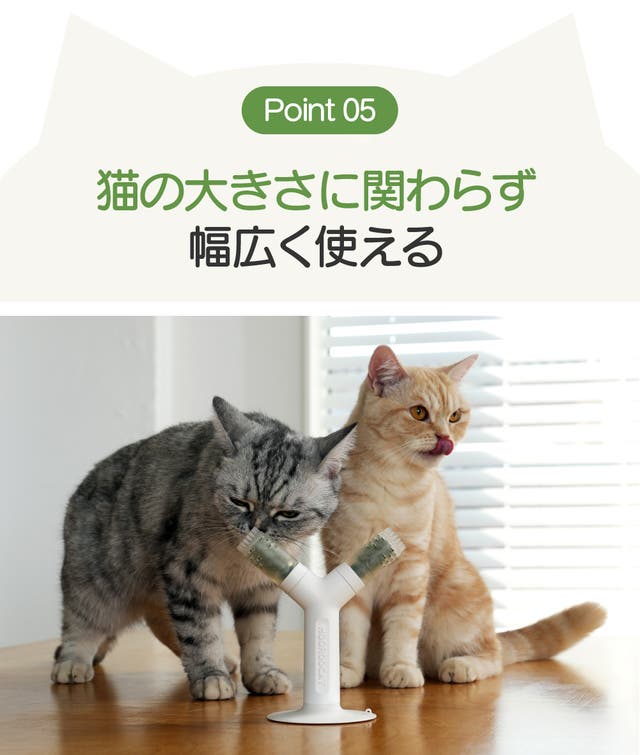 木の枝をモチーフにした独特のY字型デザインは、2匹の猫が一緒に使用でき、あごや目を引っかきやすく製作されています。