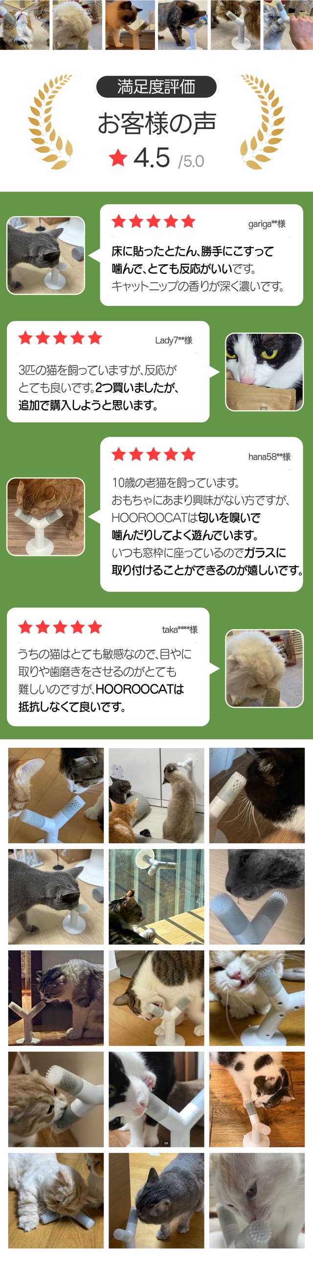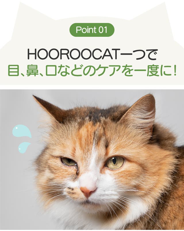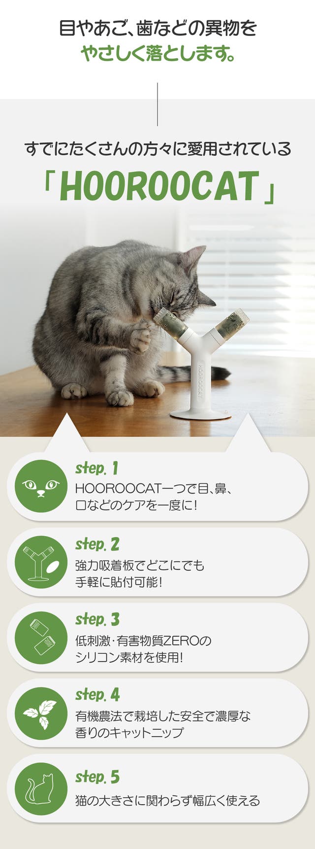 - HOOROOCAT一つで目、鼻、口などのケアを一度に!遊びながら自然にケアができる。