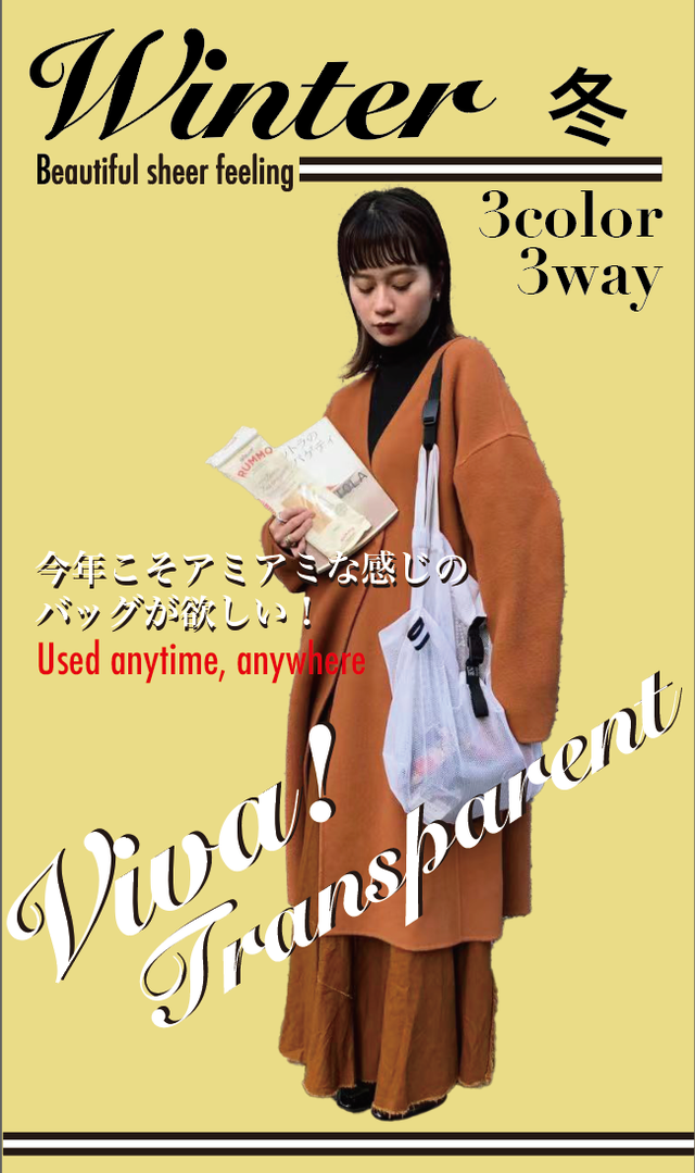 - トレンドの透け素材を使用した、メインバックとして使いたくなるメッシュECOバック!