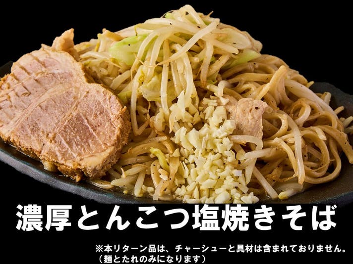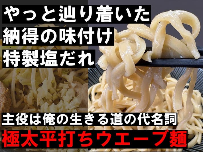 - 俺の生きる道で人気のワシワシ極太麺と開発した特製塩だれで、納得の塩焼きそばが完成しました!