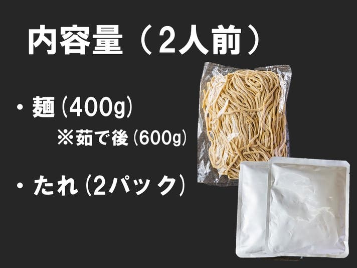 【内容量】麺400g(2人前)×2、塩だれ×2、ソース×2