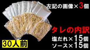【内容量】麺400g(2人前)×15、塩だれ×15、ソース×15