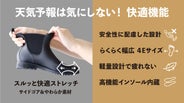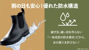 - 防水部分に継ぎ目、縫い目を作らない一体成型技術で激しい雨や水たまりでも水の侵入を許さない!