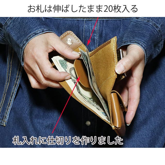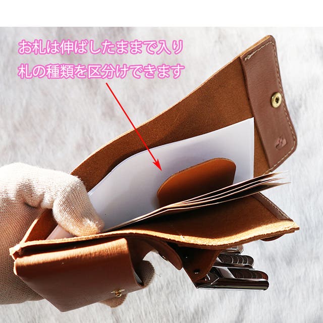 - 小さめの財布に小銭の管理が一目でわかり、お札は伸ばしたまま収納できる革財布