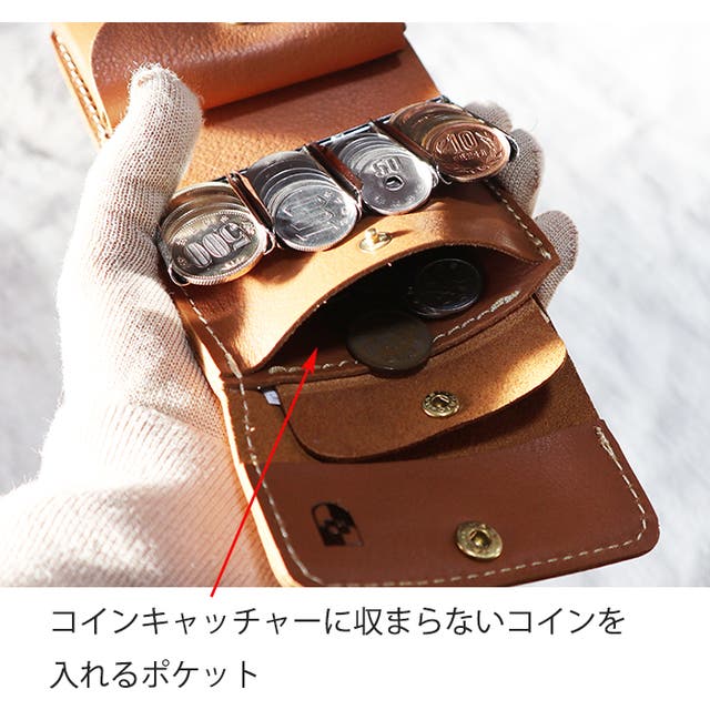 コインをスライドさせて出し入れするコインキャッチャー金具つき、コインの管理が一目でわかり、必要以上に小銭がたまりません。