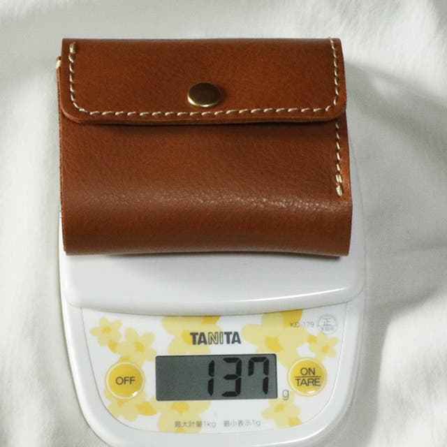 コイン、カード、紙幣が一つにまとまる手に収まる本革のハンドメイド財布
