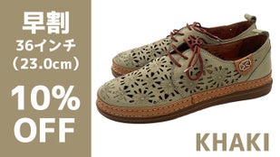 【早割 10%オフ KHAKI 36インチ 】ソフトカウレザースニーカー