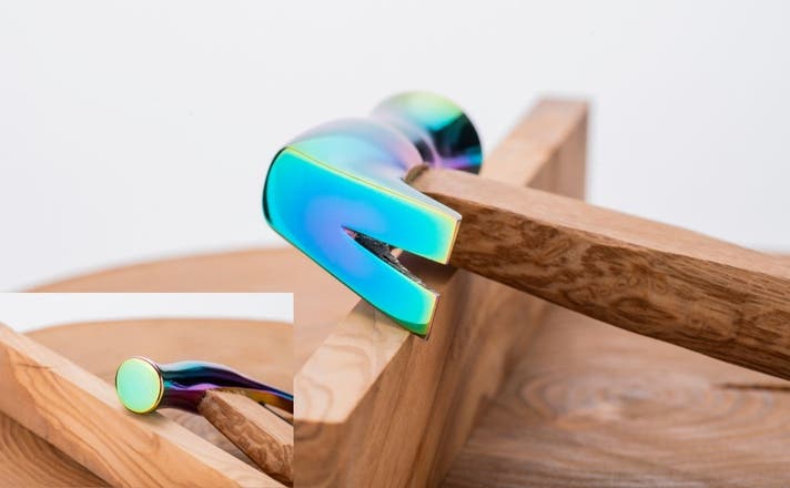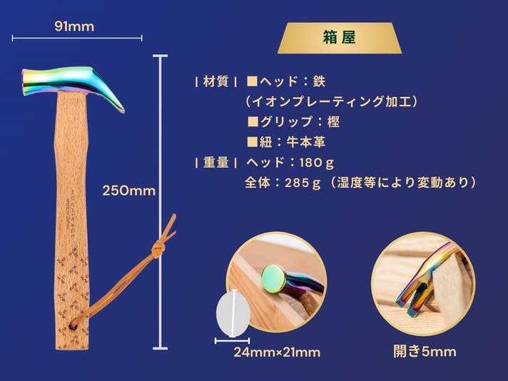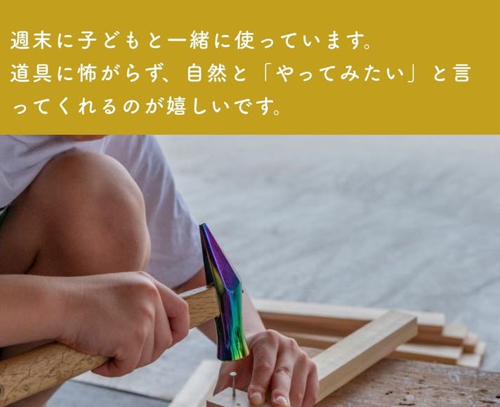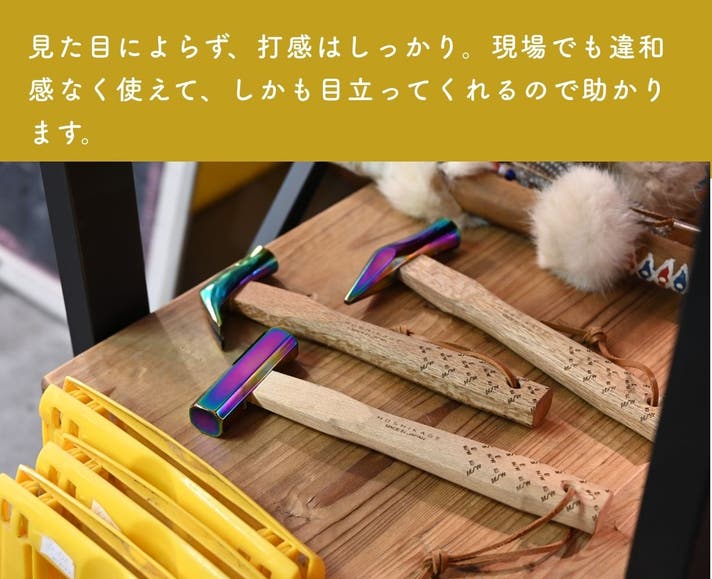 七色に輝くヘッドと天然木の柄を持つ「ほしかげ」は、DIYはもちろん、日常やアウトドアのさまざまな場面で活躍します。実用性とデザイン性を兼ね備えた1本は、使うたびに気分を高めてくれる存在です。