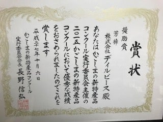 2015年鹿児島県主催かごしまの新特産品コンクールにて奨励賞受賞