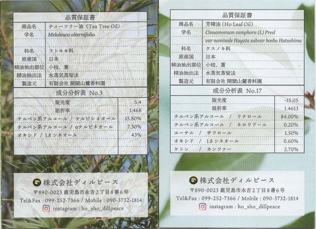 ここ(九州鹿児島)に芳樟精油とテイーツリー精油があるから。