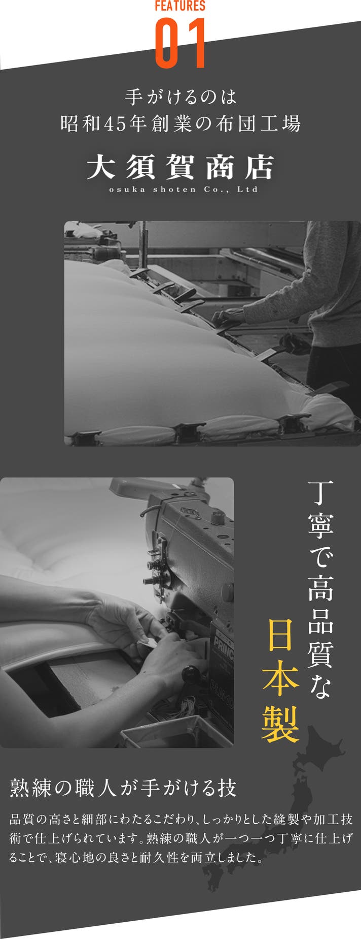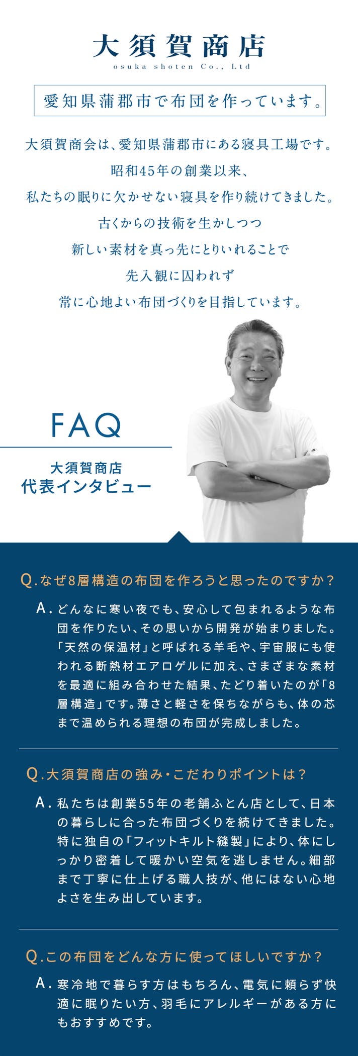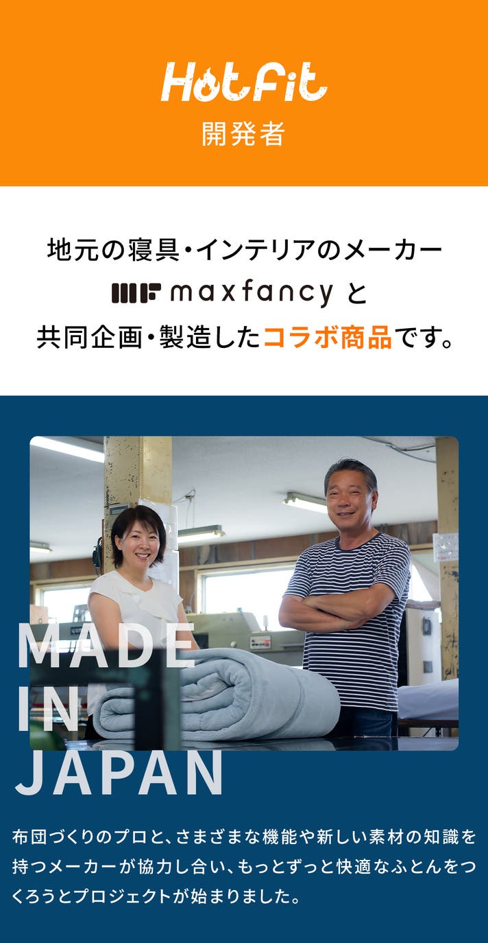 身体の平均幅に合わせた独自キルトを開発