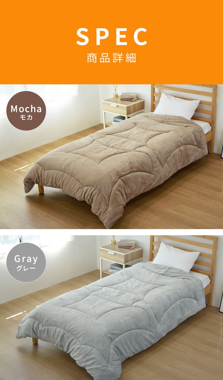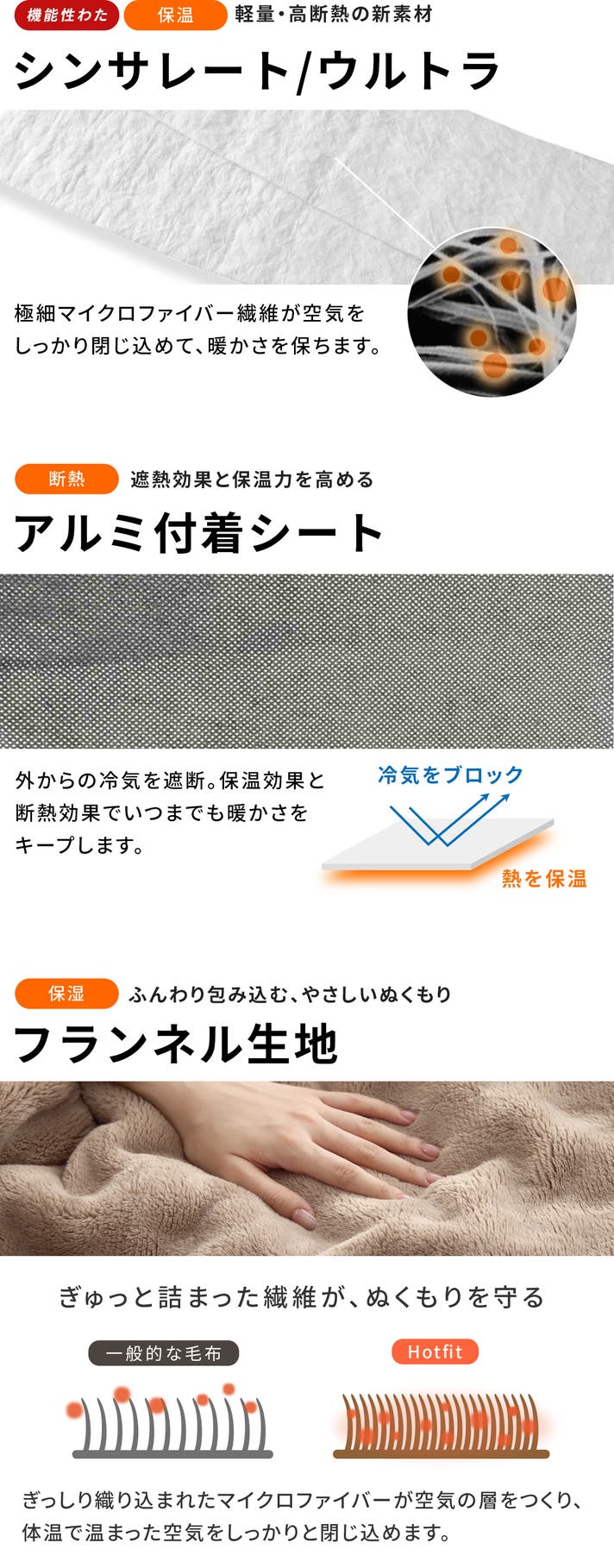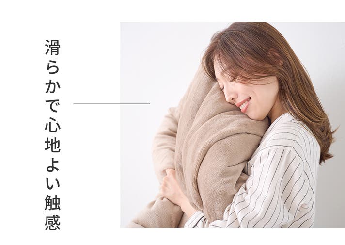 肌に触れる表地はやわらかくなめらかな肌触りのフランネル生地を採用。基布部分に吸湿発熱素材を使っているので、暖かくふとんに入った時の不快なひやっと感も軽減されています。