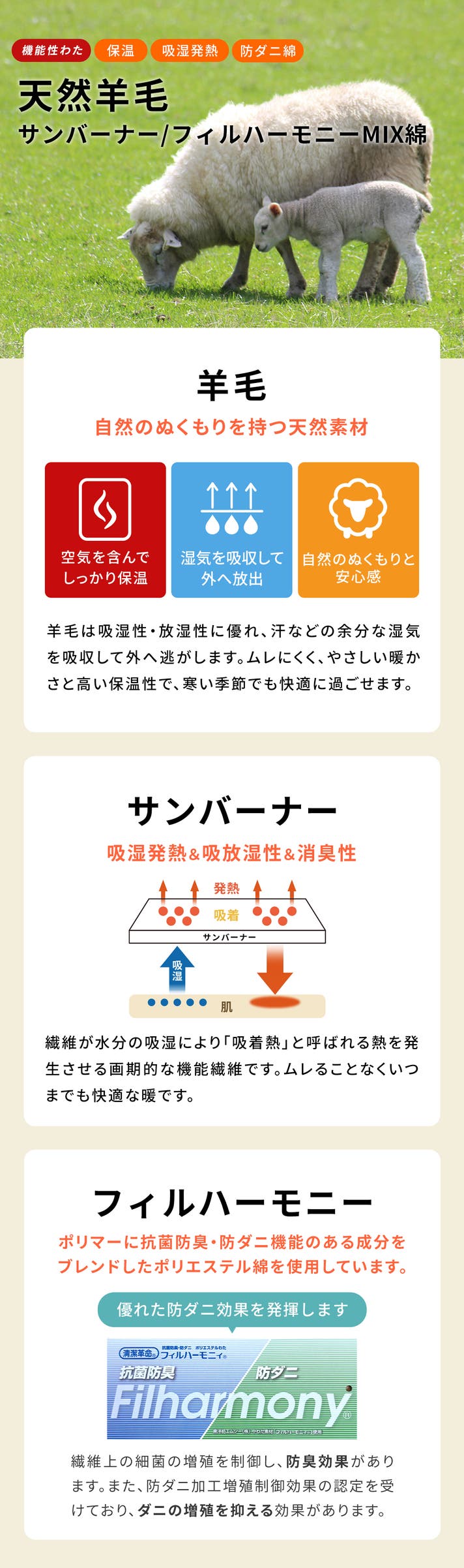 - 抗菌・防臭・防ダニ効果に優れた中綿が細菌の繁殖をブロック!家庭用洗濯機で丸洗いOK。