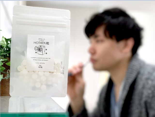 この性質を活かしたHOTAPAランドリーという洗濯する際に、洗濯洗剤と一緒にご使用頂く商品がありましたが、粉が舞ったり、分量が分かりにくい、この様なお問合せを受けて技術改良を重ねた結果出来たのが、粉を粒状(タブレット)にしても水に溶けるという技術で、2016年国際特許出願を致しました。