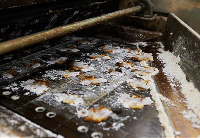 素材を傷つけないために、そして素材のおいしさを最大限生かすため、熟練の焼き職人が一枚一枚丁寧に焼き上げていきます。