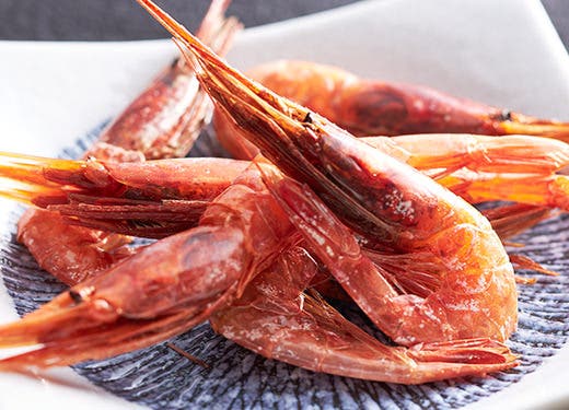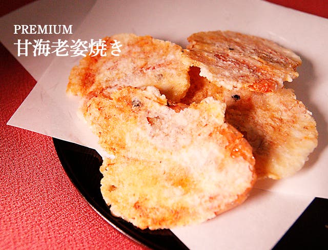 鉄板でプレスし焼き上げ、仕上げに油でパリッと揚げると広がりゆく香り。甘えび本来の旨さを存分に味わっていただけます。甘えびの旨みを凝縮したこだわりの逸品です。