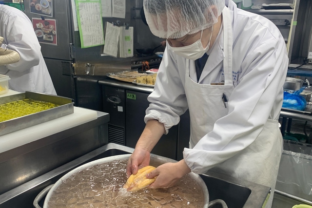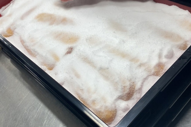 最後の「干し」の工程では、ホテルの屋上で天日干しをすることで、清くひんやりとした寒空の下、日光をたくさん浴びることができるため旨味がぎゅっと詰まったからすみに仕上がります。