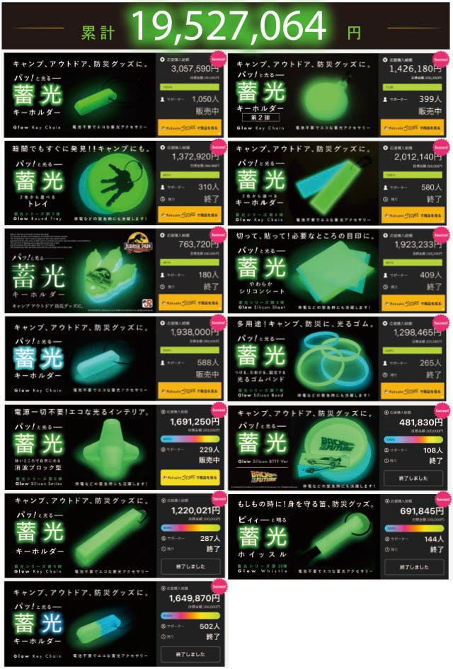 Makuakeでスタート販売した蓄光シリーズは総計5000人以上の方から応援購入頂きました、大好評の企画の第11弾になります。(2026年4月現在)