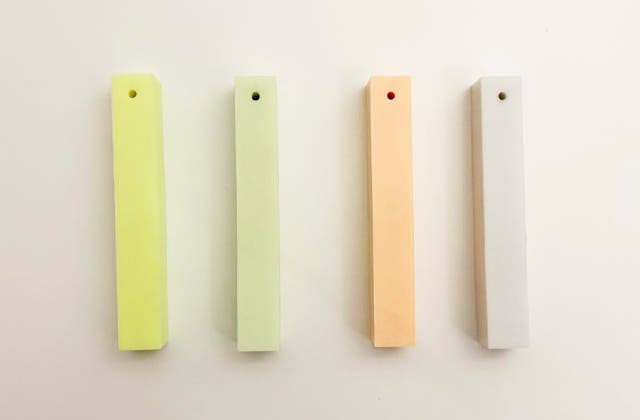 今回、新色を作るために、ブルー以外にもオレンジやパープルも試作実験してみました。