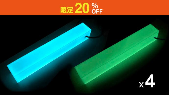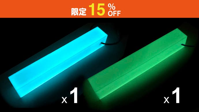 材料は同じなので、もちろん光り方は同じです。廃棄するのももったいない、環境にもよくないという考えから、訳あり品として限定販売いたします。変形や汚れは気にならないという方はお得ですので、ぜひこの機会にお試しください。(訳あり品はボールチェーンのみ付属になります。ワイヤーチェーンは付属していません)