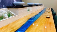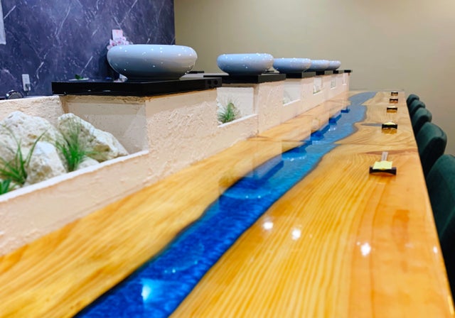 沖縄の澄んだブルーな海をイメージした店内には、青をベースとしたカウンターや一つ一つ卓に置かれた珊瑚の岩。「出港します!」との一言で始まるコースは、まるで宝の船に乗ったかのような演出をイメージさせる造りとなっています。当店の非日常の世界感は多くの愉しみをご提供します。
