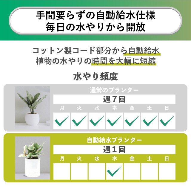 - 面倒になりがちな定期的な水やりの必要なし!自動給水プランターを採用。