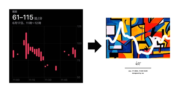 Apple Watchなどのスマートウォッチで取得した心拍数をデザインにすることができます。
