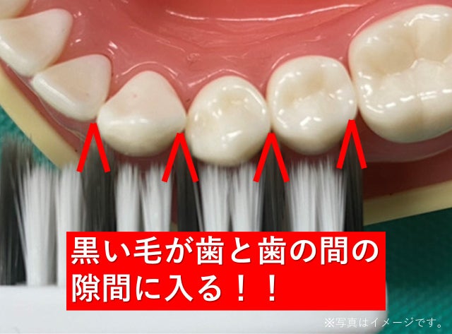 研究に研究を重ね、黒い長い毛が歯と歯の隙間に入り込む形状にすることに成功し、効率的で確実な歯垢除去を実現!!