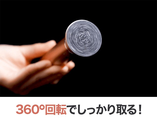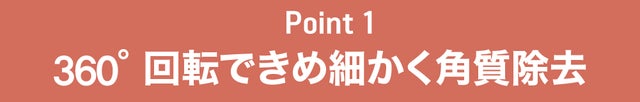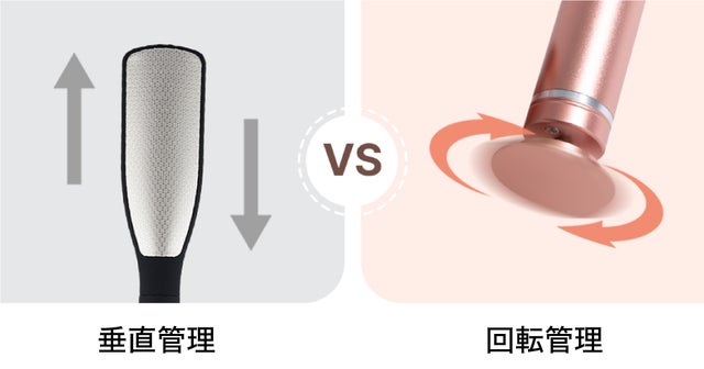強い力が必要な手動の垂直ケアとは異なり、体の曲がったところに対応できる『360度の回転ケア』で肌に優しく、しっかりと角質を取ることができます。