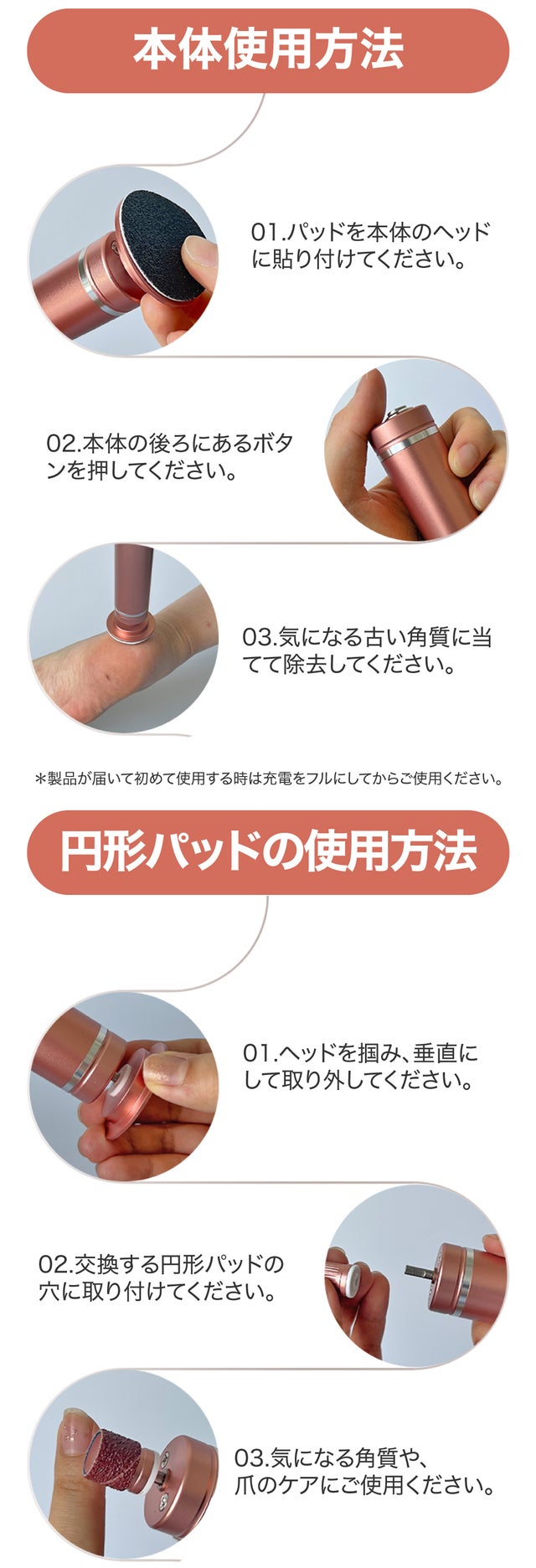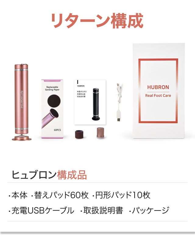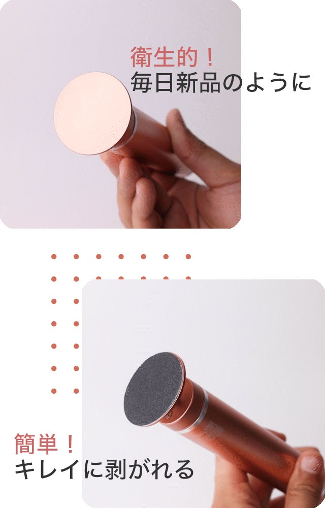 ヒュブロン無線電動角質除去器は替えパッド方式で製作し、使う度に新品のような切れ味を体験することができます。
