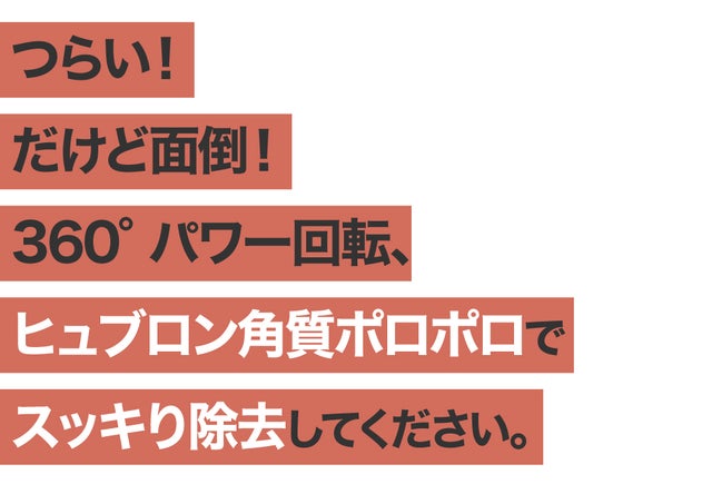 「Makuake(マクアケ)」は、実行者の想いを応援購入によって実現するアタラシイものやサービスのプラットフォームです。このページは、 プロダクトカテゴリの 「360°パワー回転!撫でるだけで簡単に古い角質を削る!「ヒュブロン角質ポロポロ」」プロジェクト詳細ページです。