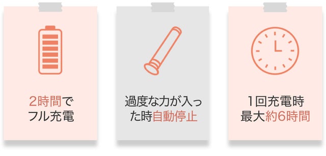 - コードレスで場所を選ばず使用可能!最大約6時間使える!