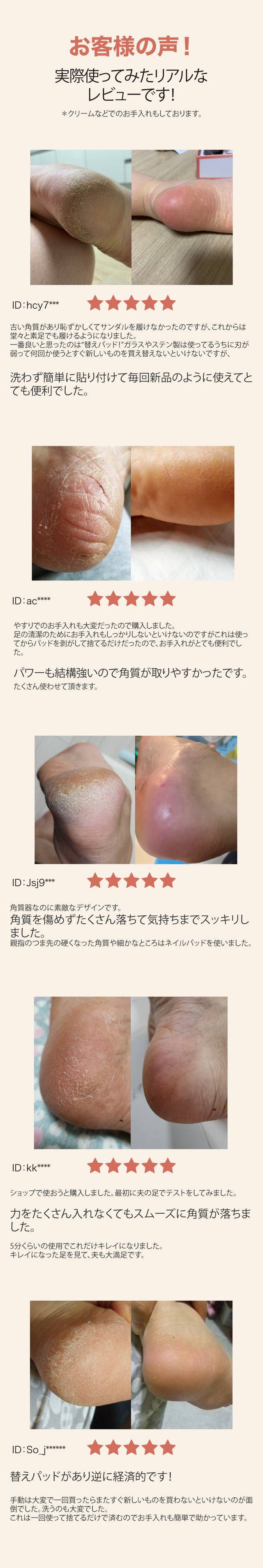 硬く厚くなった足裏の角質を力をいれず、ごっそりと自動で取ってくれるので誰にでも続けられます。