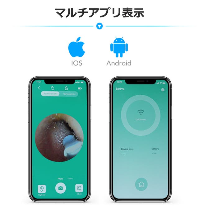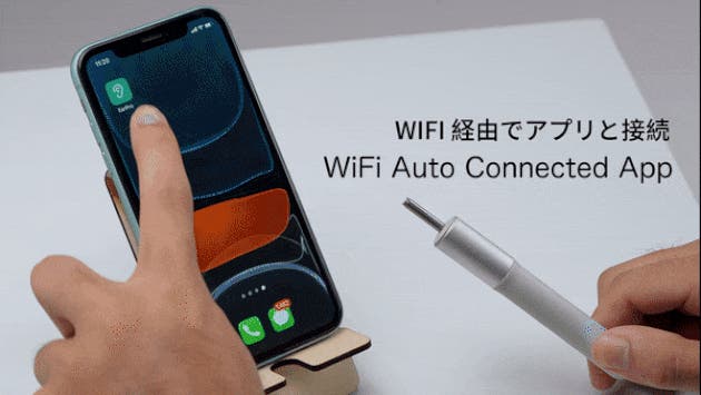 WiFiでスマート耳かきを携帯電話やタブレット上の「earpro」アプリケーションに接続することで、スマート耳かきが耳道に入り込んだ時のリアルタイムのビデオを見ることができます。