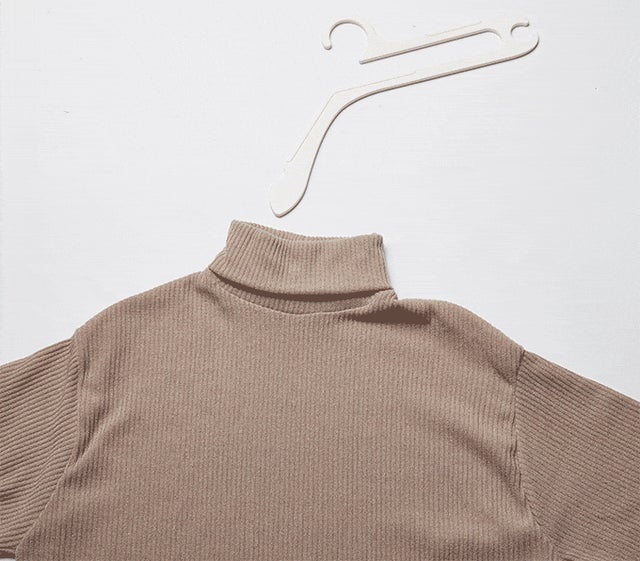 タートルネックの服も首元を伸ばさず簡単に掛けられます。